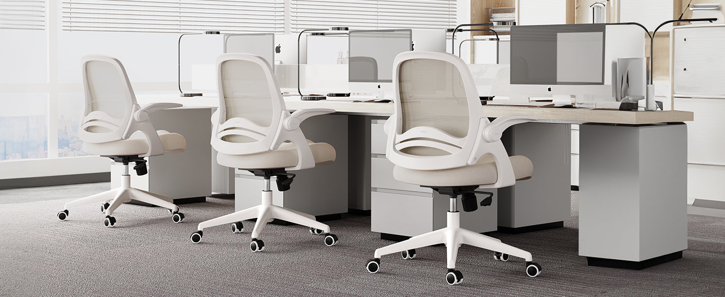 If you're looking for an office chair that can save space, then this is the perfect option for you! It has armrests that can be flipped up so that you can slide the desk chair under the desk when not in use. Now you don't have to worry about your limited space! Get this space saving desk chair and enjoy the extra room!
